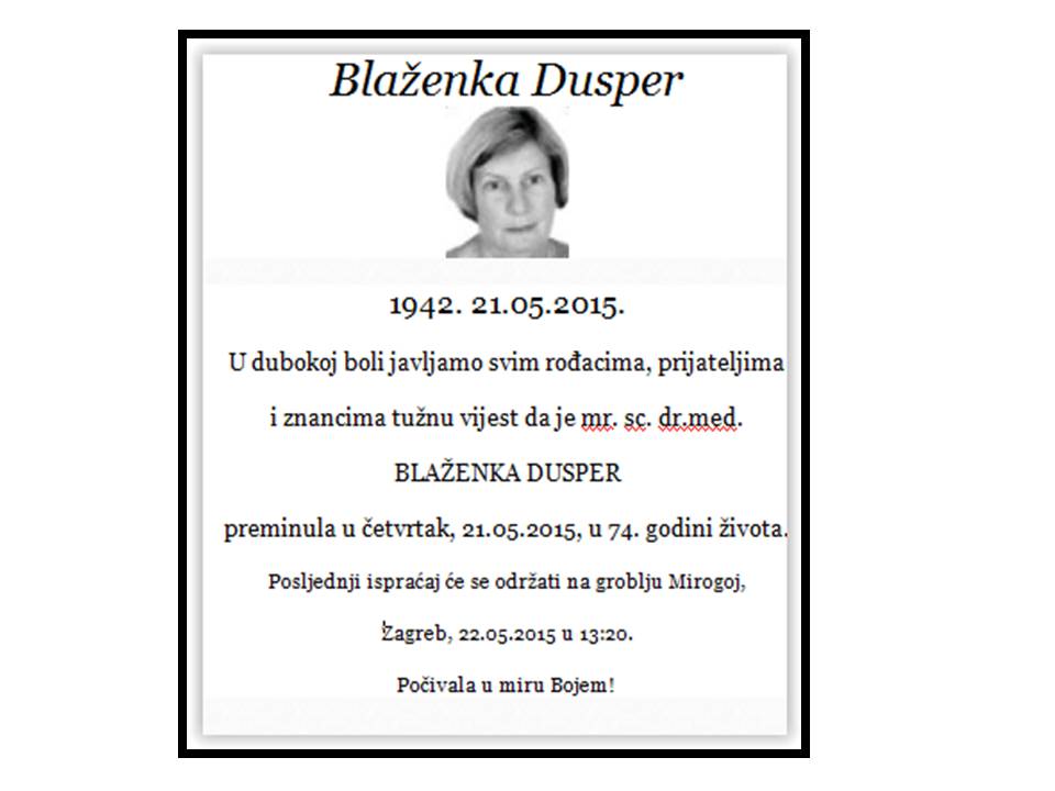In memoriam Dr Blaženka Dusper